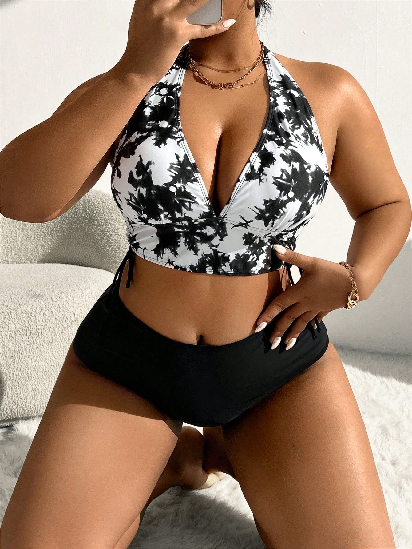 Este bikini tie-dye blanco y negro está diseñado para ofrecer un equilibrio entre elegancia y modernidad. El top halter de escote pronunciado realza la figura de manera favorecedora, con detalles de cordón en los costados que permiten un ajuste personalizado. Su estampado tie-dye en contraste blanco y negro aporta un estilo único y vibrante, manteniendo un aire innovador y fresco. Confeccionado en poliéster y elastano de alta calidad, ofrece un estiramiento medio que asegura comodidad y soporte, sin perder su forma tras múltiples usos. El bikini tie-dye blanco y negro es una prenda que combina calidad, estilo y durabilidad para acompañarte en cada ocasión especial.