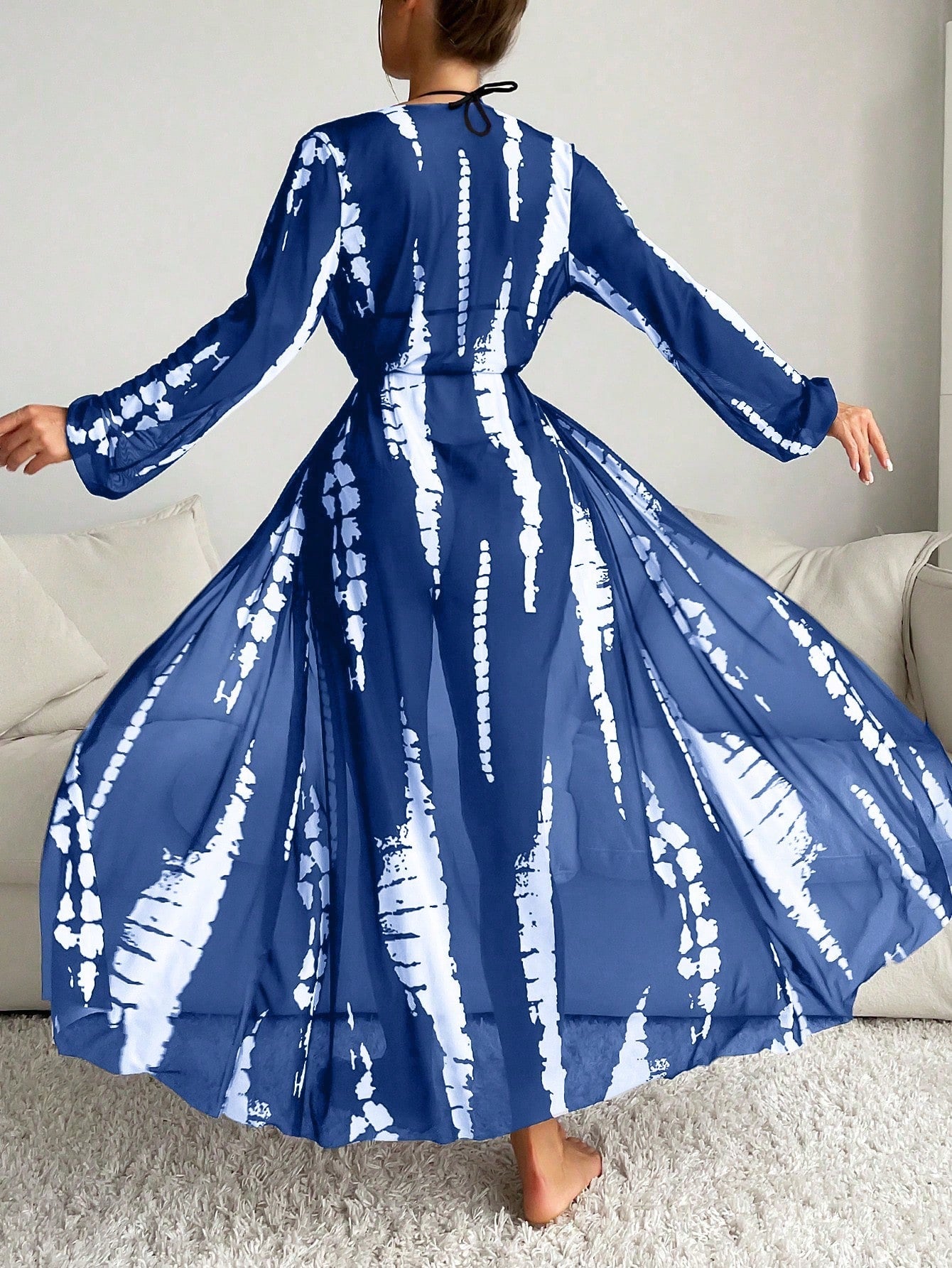 Este kimono largo tie-dye azul es perfecto para llevar en bodas en la playa, resorts o días soleados frente al mar. Su estampado tipo tie-dye en tonos neblina azul aporta un aire moderno y relajado, mientras que el corte largo y las mangas largas lo hacen ideal para lucir elegante sin esfuerzo. Puedes usarlo abierto para un look más relajado o cerrado con el cinturón para definir la cintura. Combínalo con sandalias, gafas de sol y accesorios dorados para un look completo que destaque tu estilo vibrante.