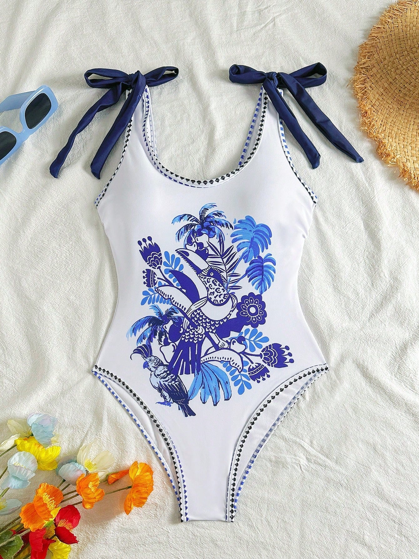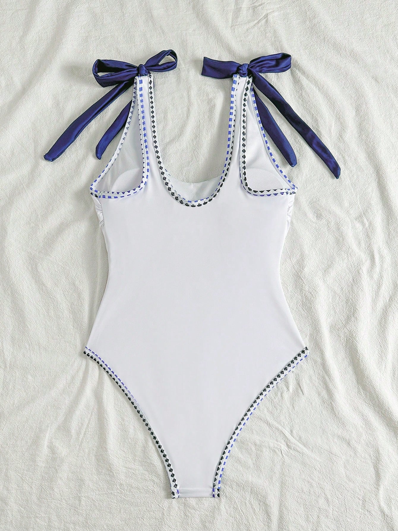 El traje de baño bohemio está confeccionado con tela tricotada de alta elasticidad que se ajusta al cuerpo brindando comodidad y libertad de movimiento. Su diseño semitransparente con detalles en ribete de contraste y copa completa aporta soporte, mientras que los lazos en los hombros añaden un toque elegante y femenino. La espalda al aire y el nudo decorativo refuerzan su estética bohemia, garantizando una prenda fresca y de alta calidad.