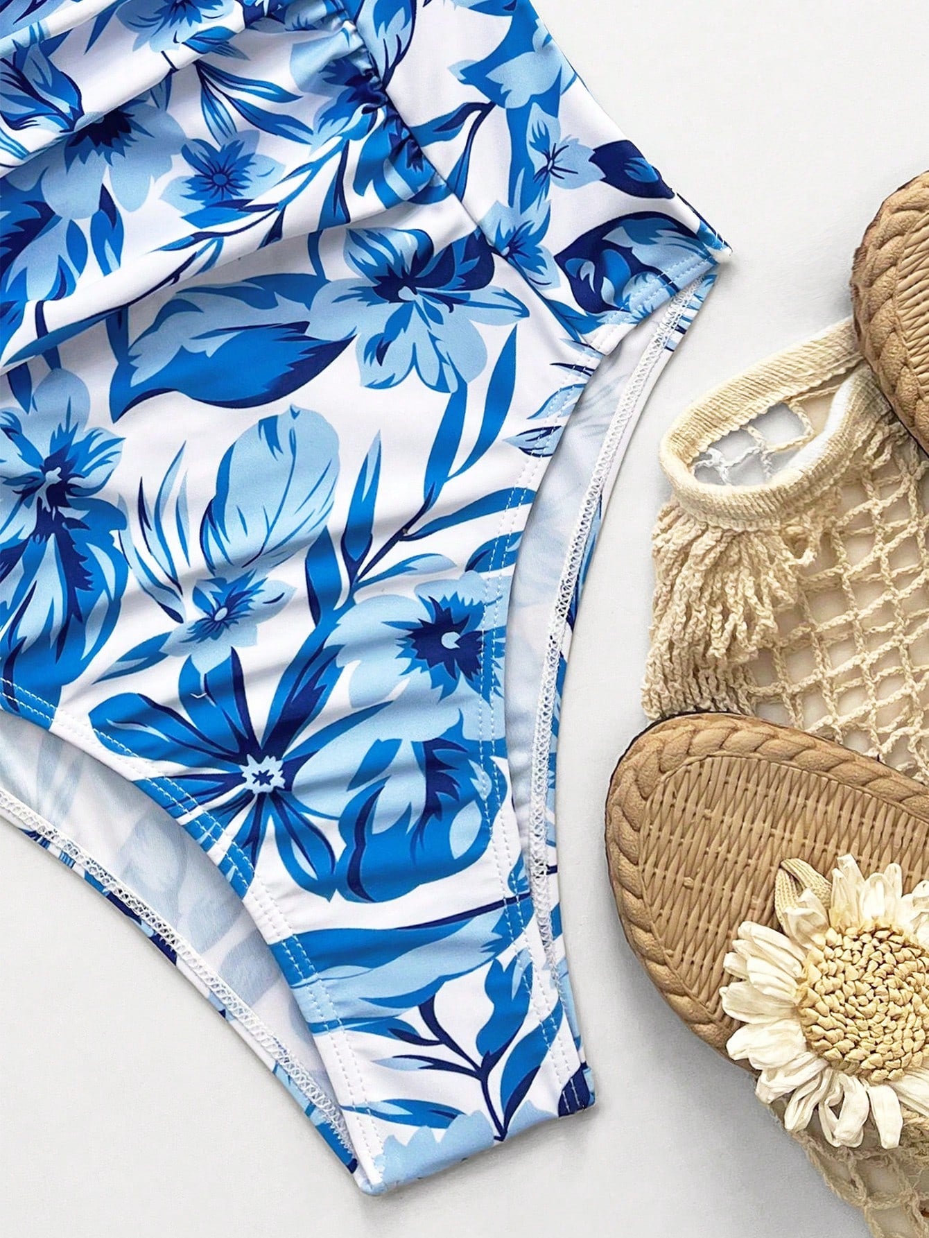 Hecho para moverse contigo, este traje de baño entero tropical azul y blanco está confeccionado en tela de 82% poliéster y 18% elastano, con estiramiento medio para mayor flexibilidad. Su diseño sin forro mantiene una sensación ligera al contacto con el agua, ideal para paseos por la playa o relajarte junto a la piscina. Aunque no es transparente, se recomienda su lavado a mano o limpieza profesional para conservar sus colores y forma.