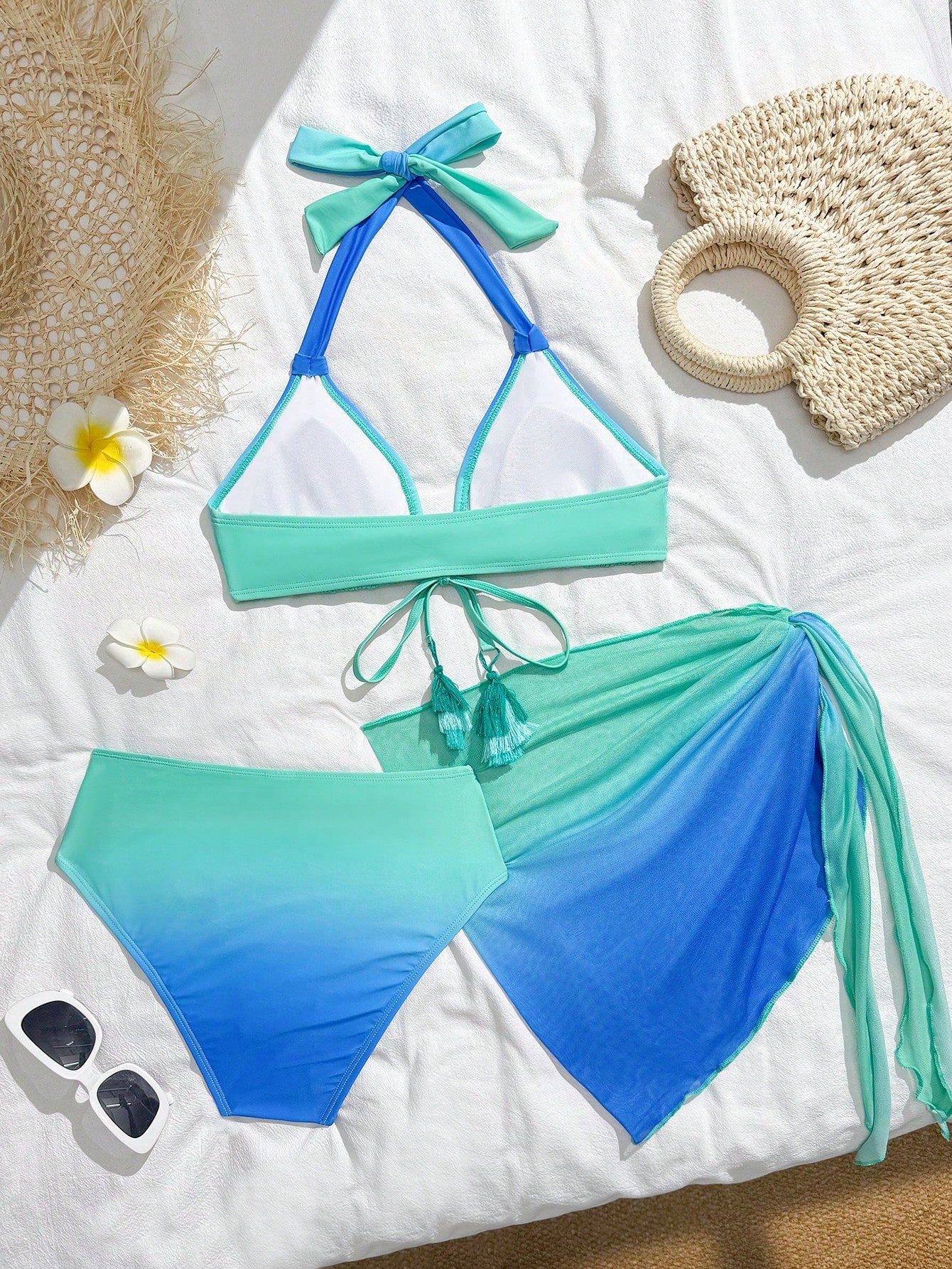 El Bikini Multicolor Degradado Halter De 3 Piezas es la elección perfecta para quienes buscan un estilo fresco, femenino y lleno de personalidad durante sus días de sol. Este conjunto destaca por su estampado integral con efecto degradado en tonos verdes y azules, el cual evoca el mar y transmite una sensación de frescura inmediata. Además, su diseño moderno permite combinar comodidad y estilo en una sola propuesta pensada para la playa y las vacaciones.