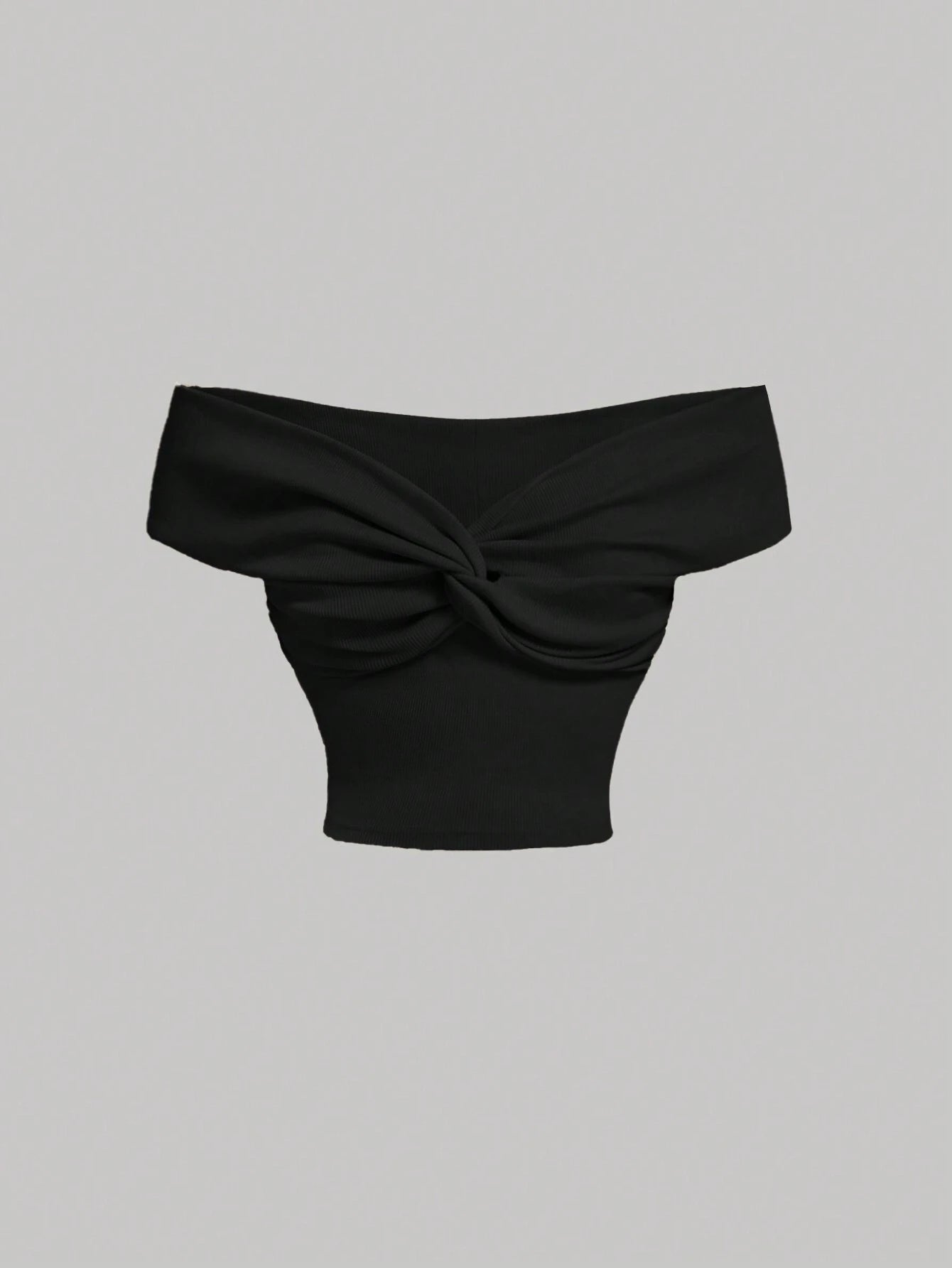 La blusa negra crop con hombros descubiertos es una prenda imprescindible para crear looks modernos y llenos de actitud. Su diseño ajustado y de corte crop resalta la figura, mientras que los pliegues en canalé le dan textura y un toque sofisticado que la diferencia de un básico tradicional. El escote con hombros descubiertos añade sensualidad y frescura, ideal para combinar con jeans, pantalones de tiro alto o faldas, logrando atuendos tanto casuales como más arreglados. Confeccionada en tela tricotada de 95% poliéster y 5% elastano, ofrece comodidad y un estiramiento medio que se ajusta al cuerpo sin perder movilidad.
