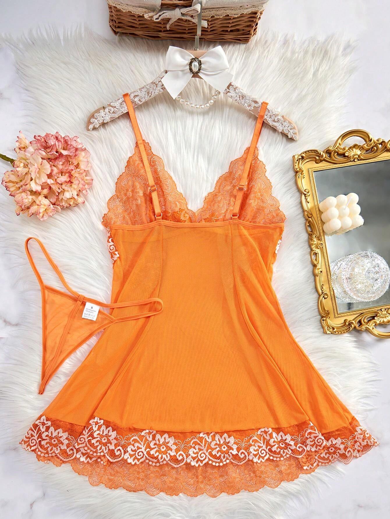 El camisón sexy naranja con encaje y lazo es la prenda ideal para quienes buscan elegancia, frescura y sensualidad en un solo conjunto. Este set de 2 piezas incluye un vestido tipo slip semitransparente y una braga a juego, diseñados para realzar tu figura con un estilo atrevido y delicado. Con tirantes finos ajustables, escote en V y detalles de encaje floral en contraste, este camisón se convierte en un must-have para ocasiones especiales como San Valentín, noches románticas o incluso vacaciones llenas de estilo. Su color naranja vibrante aporta energía y seguridad, mientras que el lazo decorativo al frente suma un aire coqueto y femenino.