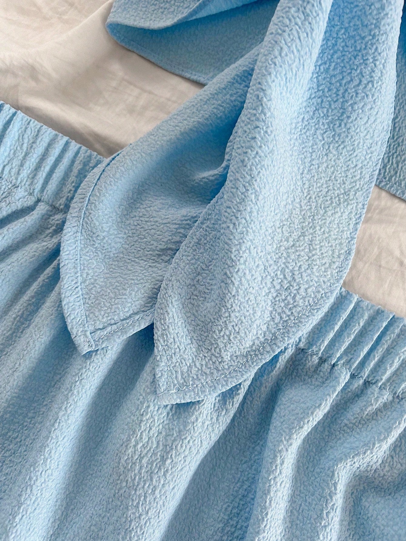 Detalles: Bajo con volante, nudo frontal.