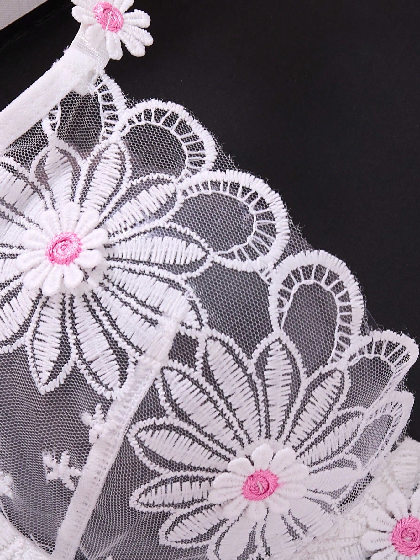 Este conjunto destaca por su transparencia estratégica, la cual aporta un efecto visual delicado y atractivo. Sin embargo, el bordado floral equilibra el diseño, ofreciendo un acabado refinado y romántico. De igual manera, su confección en poliéster con elastano permite un ajuste cómodo y flexible.