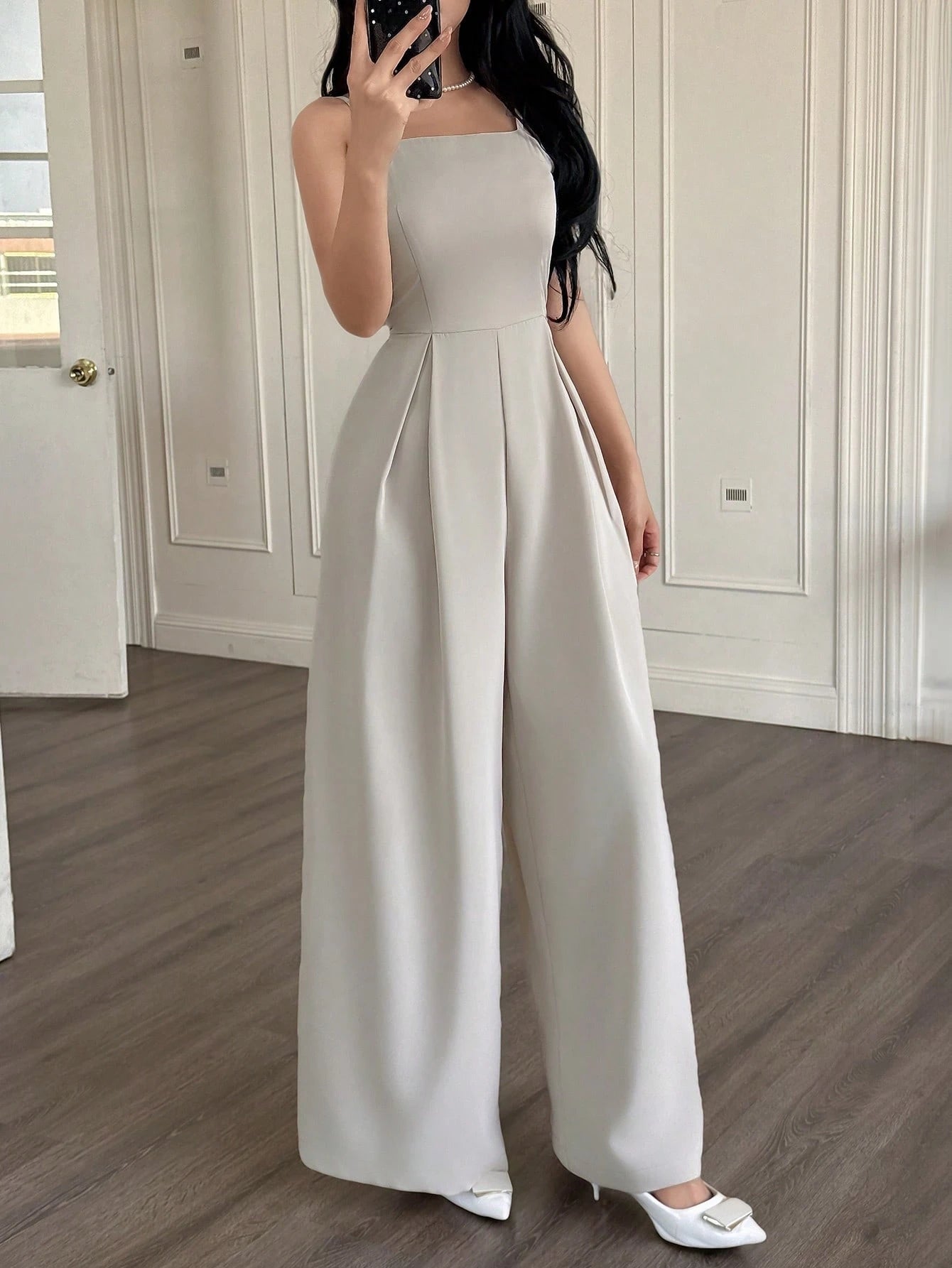 Este jumpsuit elegante en tono albaricoque está diseñado para destacar con un estilo moderno, limpio y sofisticado. Gracias a su escote recto con tirantes finos, crea una silueta refinada que realza los hombros y el cuello, mientras que la espalda al aire aporta un toque sutil de sensualidad sin perder la elegancia. Su cintura de talle alto estiliza la figura y define perfectamente el torso, conectando con un pantalón recto de caída amplia que aporta movimiento y presencia al caminar. La tela tejida, suave y resistente, ofrece una estructura impecable, lo que convierte a esta pieza en una opción ideal para eventos elegantes, celebraciones especiales o salidas donde quieras lucir distinguida. Además, el ajuste suelto proporciona comodidad sin comprometer la forma. Su estilo minimalista permite combinarlo fácilmente con tacones, accesorios finos y un clutch para lograr un look completamente sofisticado.