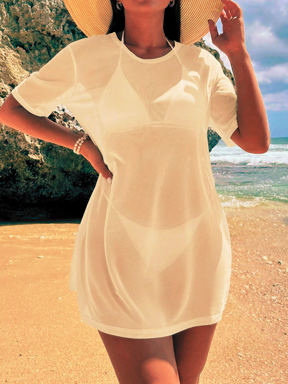 Pensada para ocasiones como playa y vacaciones, esta salida de playa transparente te permitirá moverte con libertad gracias a su ajuste regular y su tejido elástico ligero. No cuenta con forro, lo que resalta su diseño fresco y liviano, ideal para climas cálidos. Su estilo minimalista sin bolsillos ni adornos innecesarios la convierte en una pieza que puedes combinar fácilmente con diferentes bikinis o trajes de baño, logrando un look playero elegante y práctico.