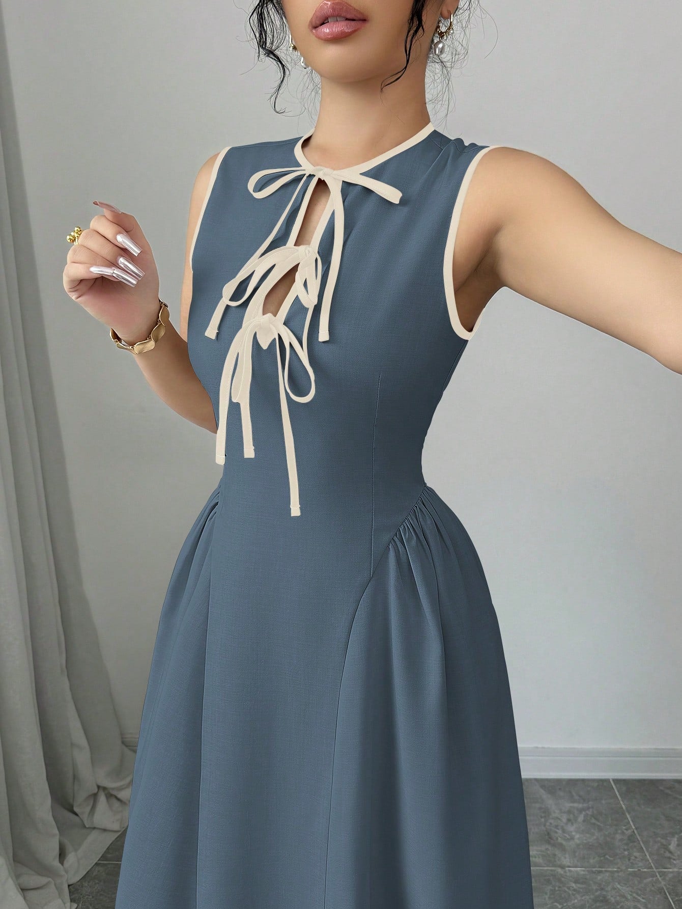El Vestido Azul Lavado Medio Midi Elegante Cruzado es una pieza diseñada para resaltar tu estilo con sofisticación y equilibrio. Primero, su diseño cruzado en la parte frontal aporta un detalle distintivo que estiliza visualmente el torso; además, la abertura sutil añade un toque femenino sin perder elegancia. Asimismo, el cuello redondo mantiene una estética limpia y refinada, ideal para eventos formales o de noche.