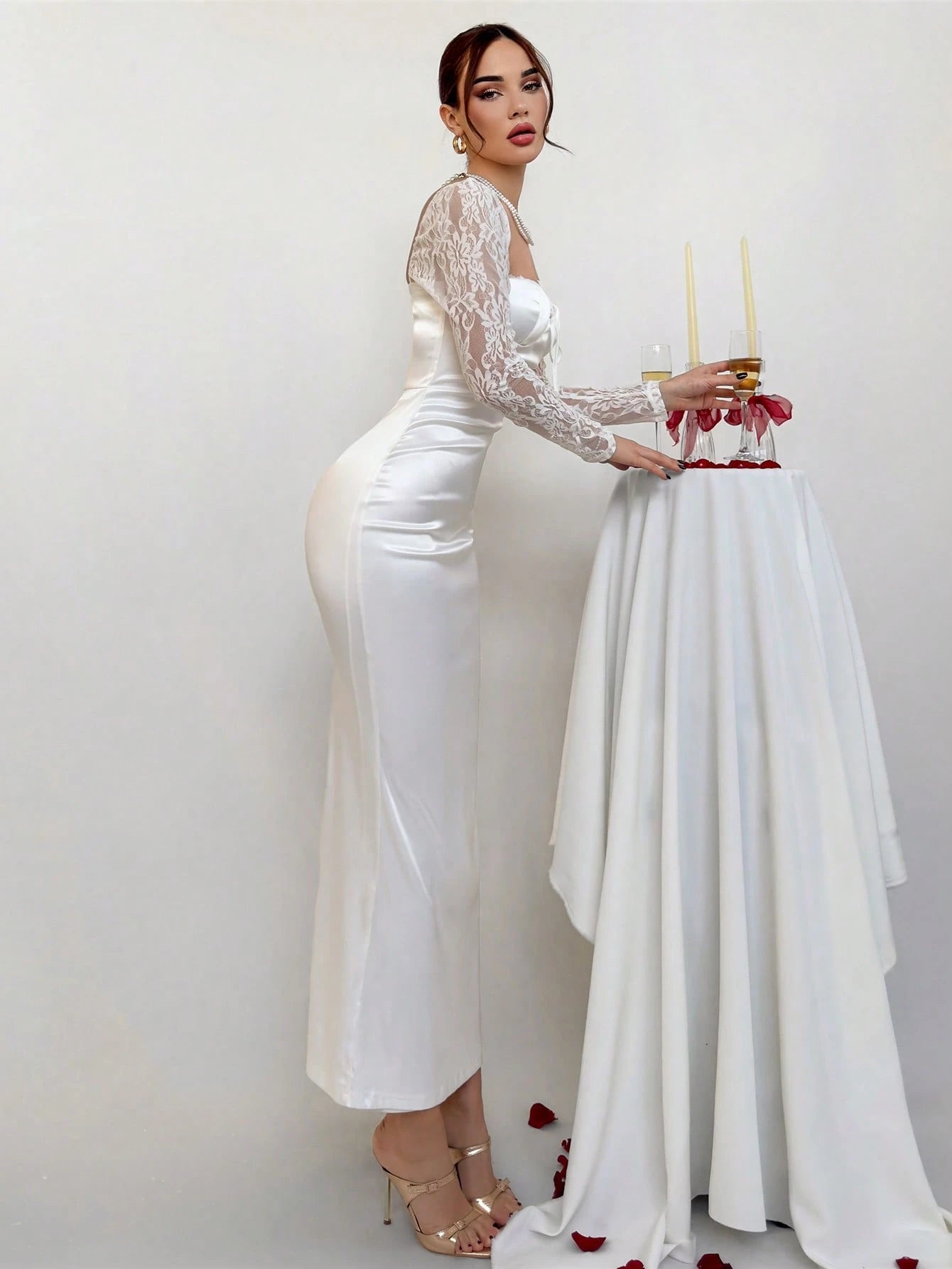 Este vestido blanco elegante para boda de satén está diseñado para destacar cada detalle de tu figura con un estilo sofisticado y moderno. Su silueta ajustada realza la feminidad de manera delicada, mientras que las mangas largas de encaje aportan un toque romántico y sutil. Además, el escote corazón en combinación con el busto estructurado ofrece un acabado refinado, ideal para eventos formales donde cada detalle importa.