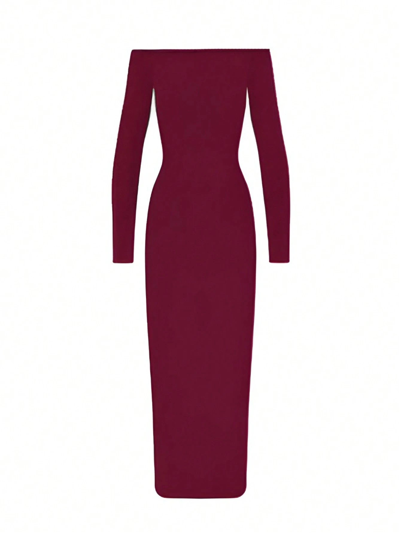Este vestido burdeos elegante de hombros descubiertos largo destaca por su diseño refinado y su silueta ceñida que realza la figura con elegancia. Su tono burdeos aporta una apariencia intensa y distinguida, ideal para bodas, cenas formales y ocasiones donde quieras destacar con estilo. Además, su confección en tela tricotada con elasticidad alta ofrece un ajuste cómodo y favorecedor, adaptándose a las curvas de manera uniforme.