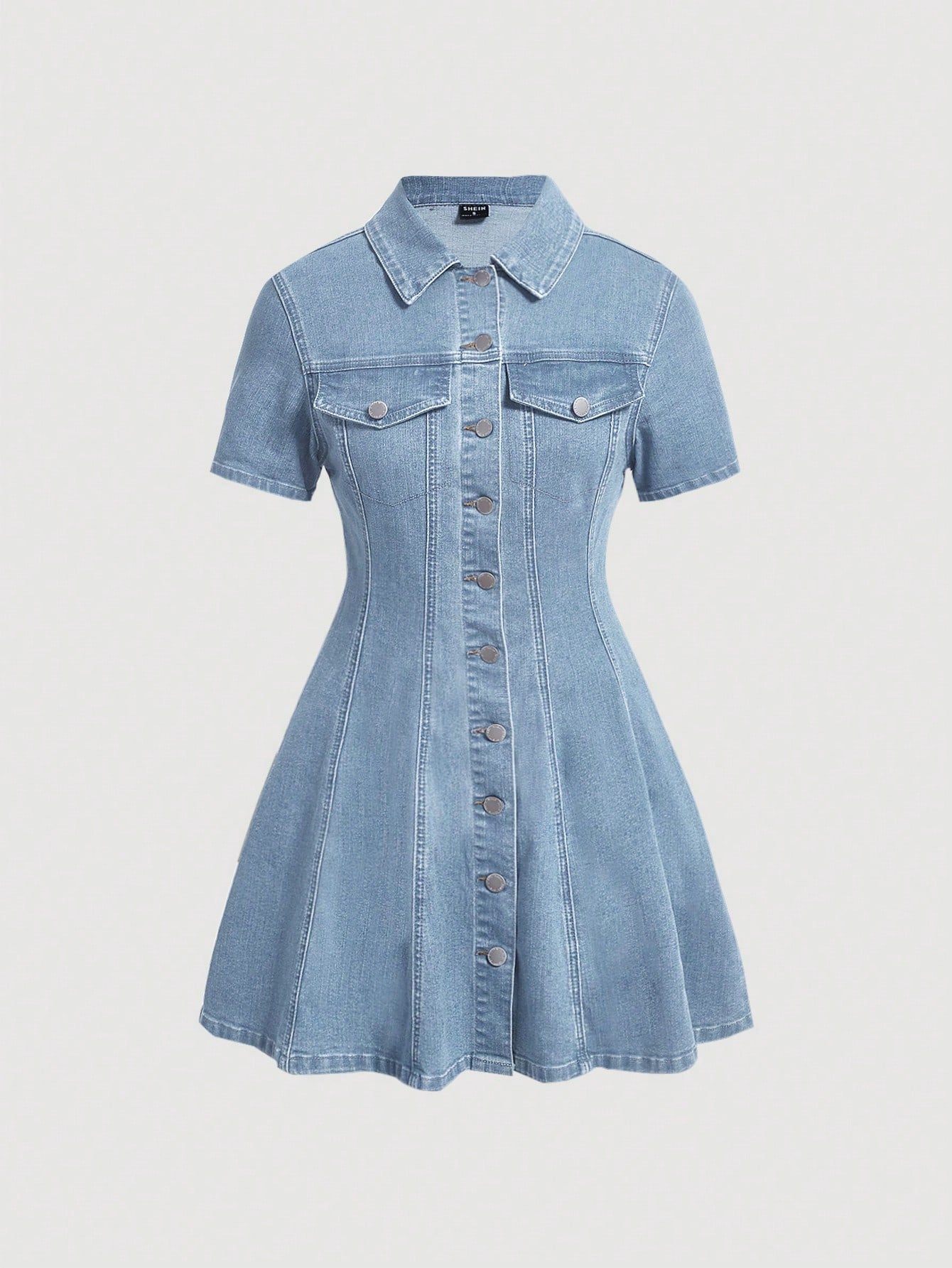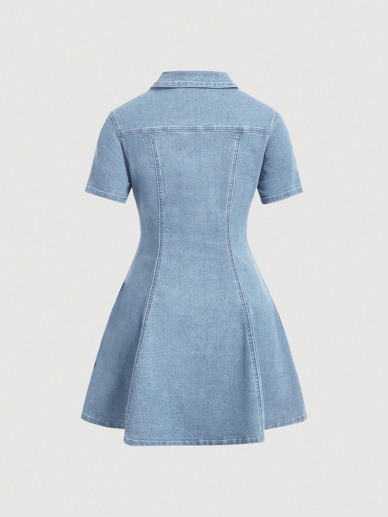 En primer lugar, nuestro Vestido De Mezclilla Corto es la pieza atemporal que revolucionará tu estilo casual esta temporada. Además, su diseño estructurado con cuello camisero y cierre frontal de botones metálicos aporta un toque retro verdaderamente encantador al catálogo de DAKARI. Por lo tanto, es la elección perfecta para lucir impecable en la universidad, durante un paseo de fin de semana o al disfrutar de una cita casual. Asimismo, gracias a sus costuras verticales estratégicamente ubicadas, este vestido entalla tu cintura natural y se abre en un delicado corte campana, favoreciendo tu silueta de una manera espectacular. En consecuencia, te sentirás increíblemente cómoda, segura y lista para acaparar todas las miradas dondequiera que vayas.