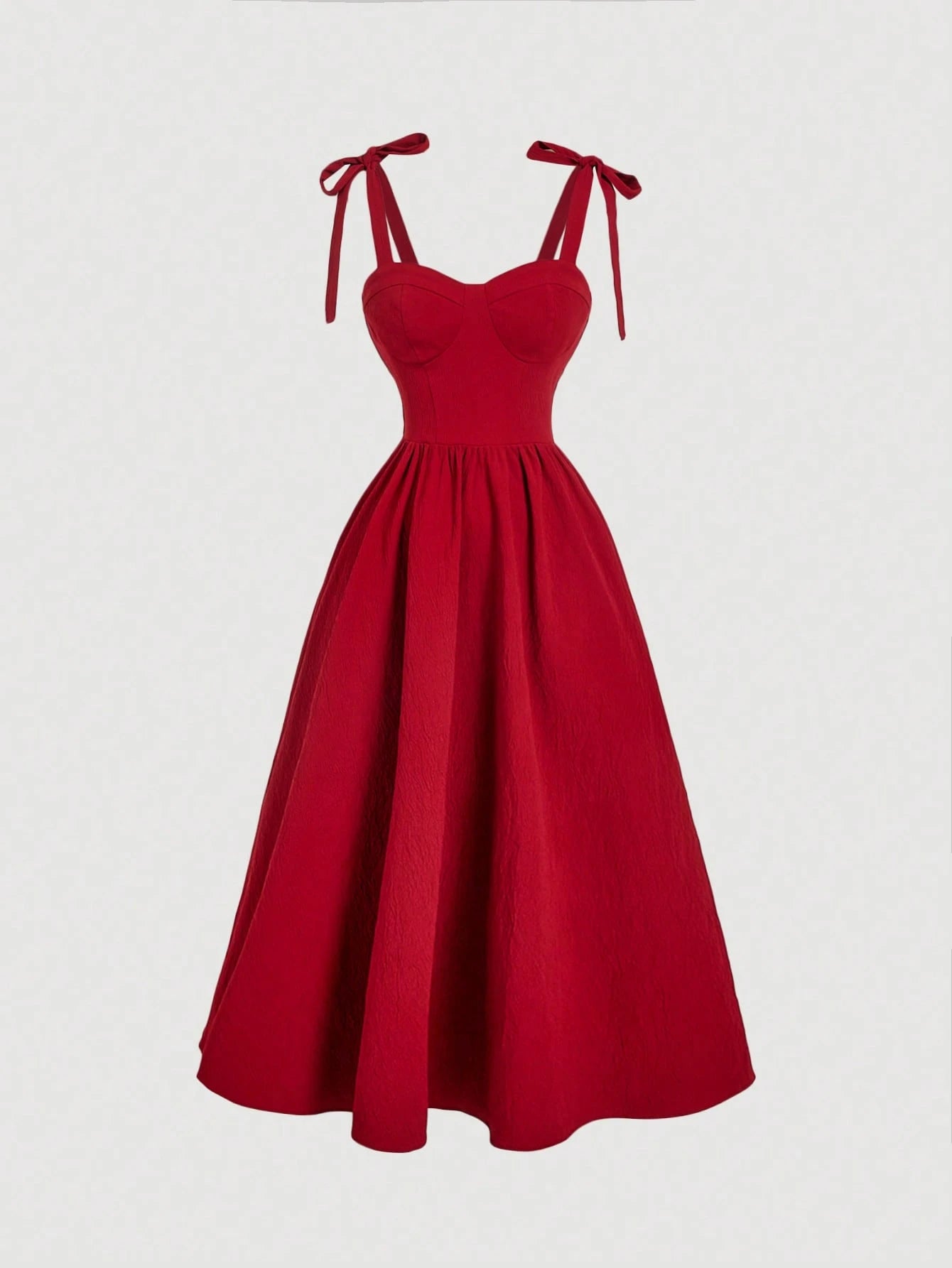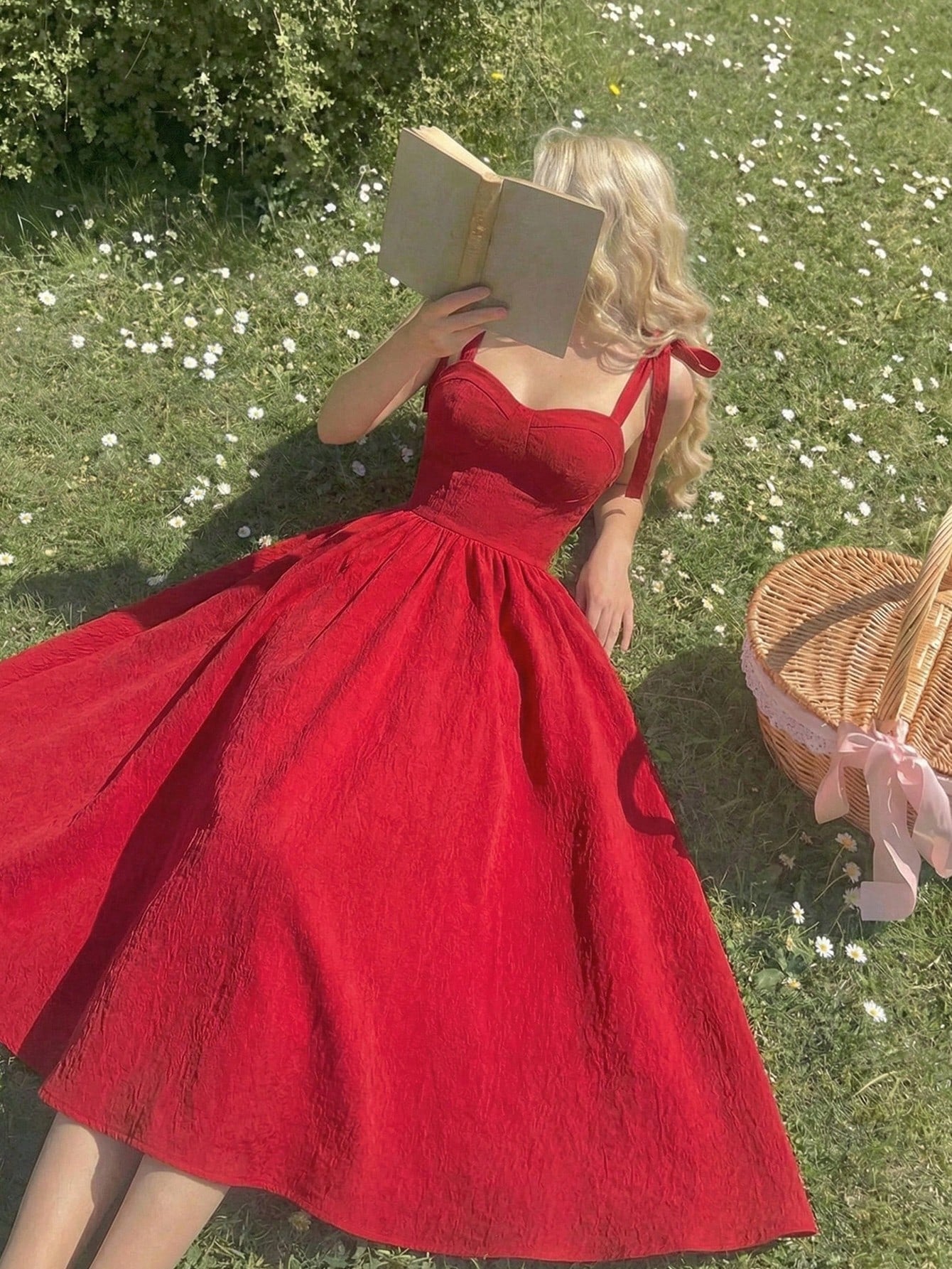 El Vestido Midi Rojo Con Tirantes Y Espalda Descubierta es una pieza femenina y elegante que combina perfectamente romanticismo, estilo y sofisticación. Su diseño ajustado en la parte superior resalta la silueta de forma natural, mientras que su falda con corte en campana crea un movimiento fluido y delicado al caminar. Además, el vibrante color rojo aporta un toque apasionado y llamativo que lo convierte en una prenda ideal para destacar en cualquier ocasión especial.