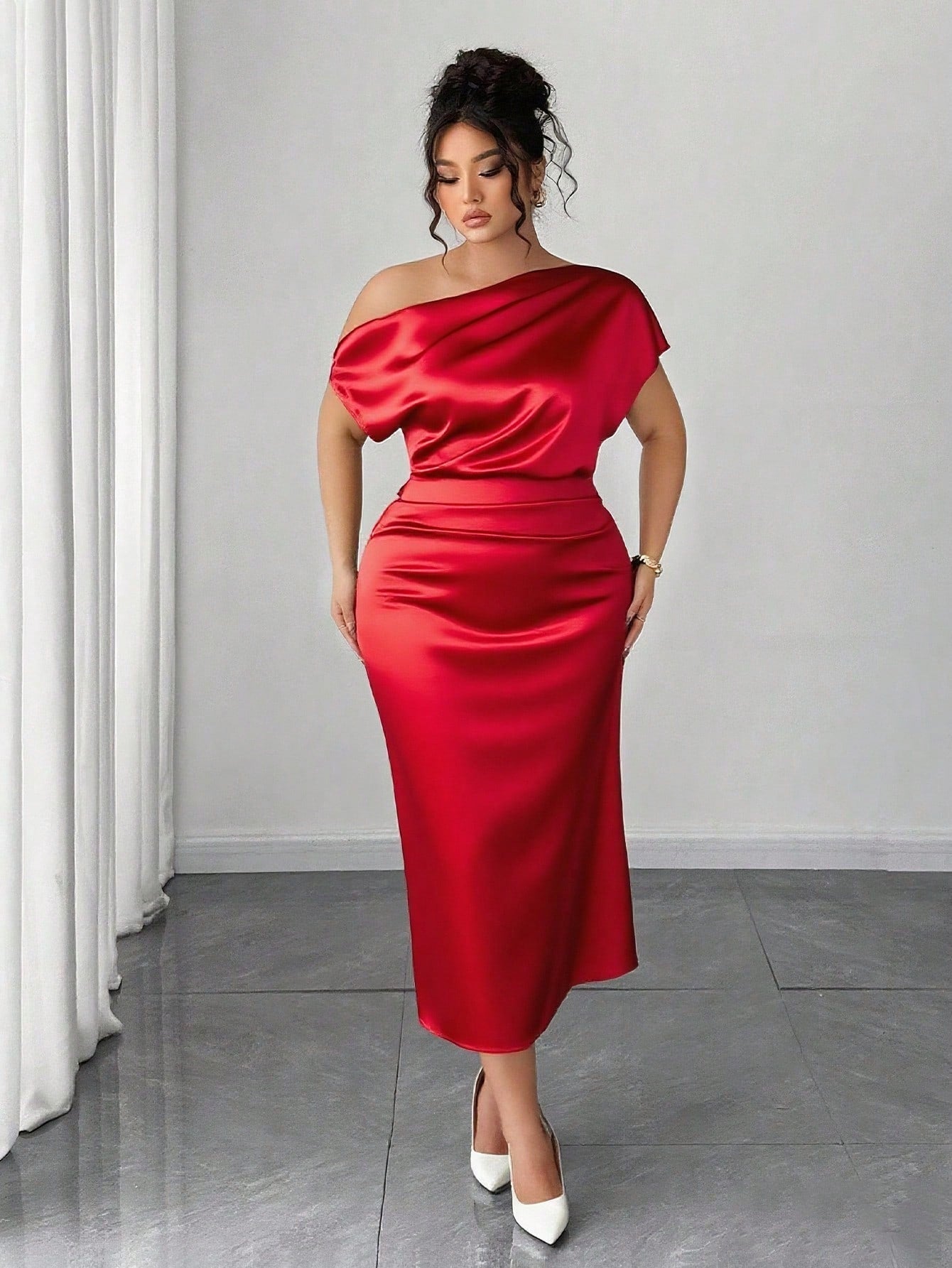 El Vestido Rojo Asimétrico Midi Elegante combina un estilo moderno con un acabado sofisticado que destaca en cualquier tipo de evento, especialmente bodas o celebraciones formales. Su diseño de cuello asimétrico aporta personalidad y un toque vanguardista, mientras que la silueta ajustada realza la figura de una manera favorecedora sin sacrificar comodidad. Además, la caída fluida del material satinado crea un efecto visual luminoso que añade movimiento y delicadeza al caminar.
